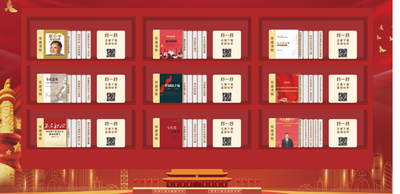 產品特點:告別成排的書柜,堆積的材料,有聲聽書墻的成立,改變了以往文化傳播方式單一、新時代文明實踐所文化陣地利用率不高的問題,同時解決了傳統書籍不易攜帶、數量有限的缺陷,更新維護成本過高的難題。一面墻+二維碼,就可以是一座圖書館。掃描墻上二維碼就能看到圖文并茂的黨規黨章,學習黨建資源,回顧黨的百年光輝歷程的有聲讀物,讓黨史知識隨時聽隨時學。