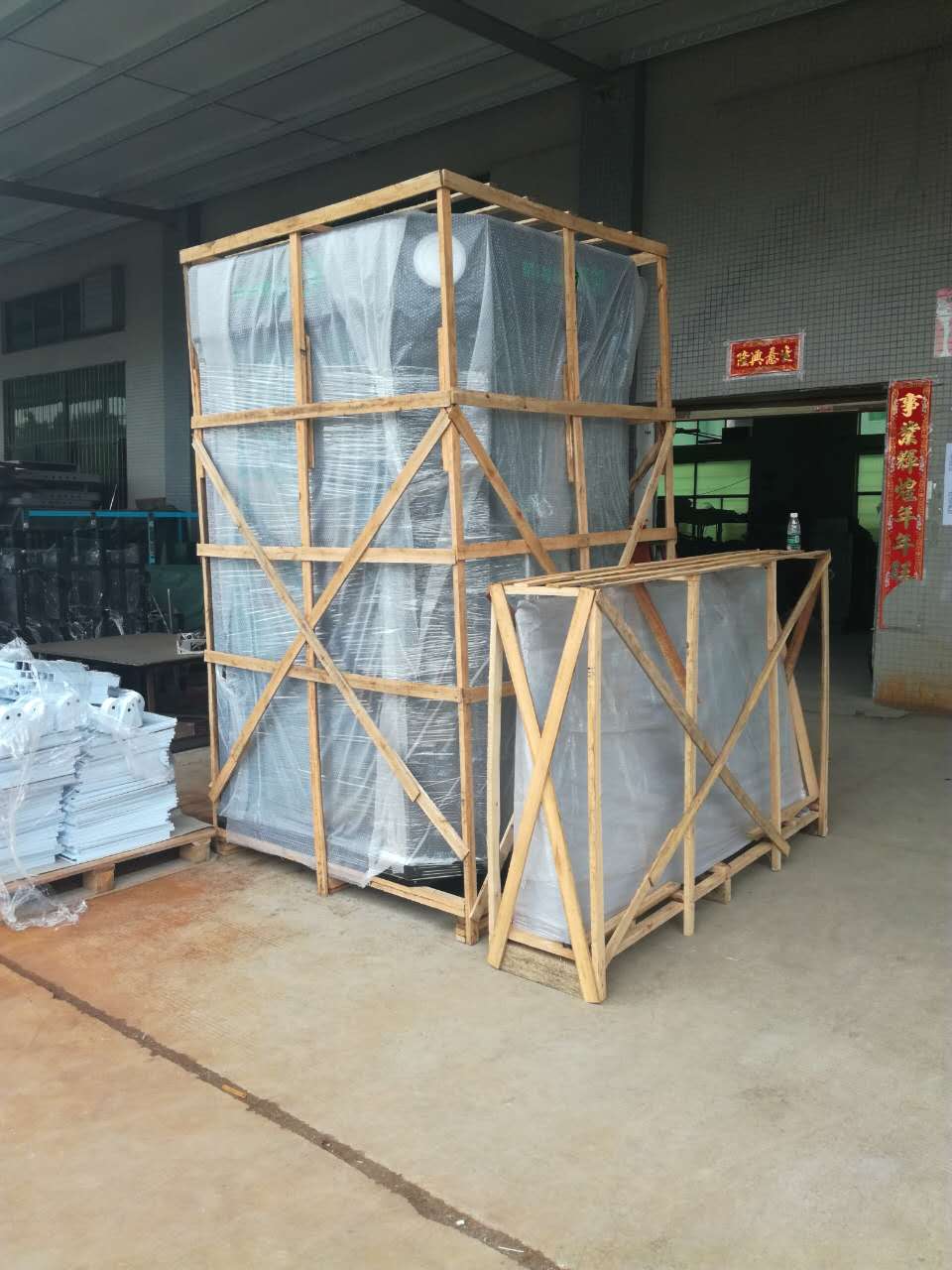 最后經過打包的程序,我們會用泡沫袋和打包膜雙重保險包裹著器材,避免相互碰撞。最后打木架嚴嚴實實地運上車。看到從研發→生產→安裝→測試→打包→運輸,完整的工業體系,客人們都對我們超級歌手自助唱吧品牌超級歌手更加放心。