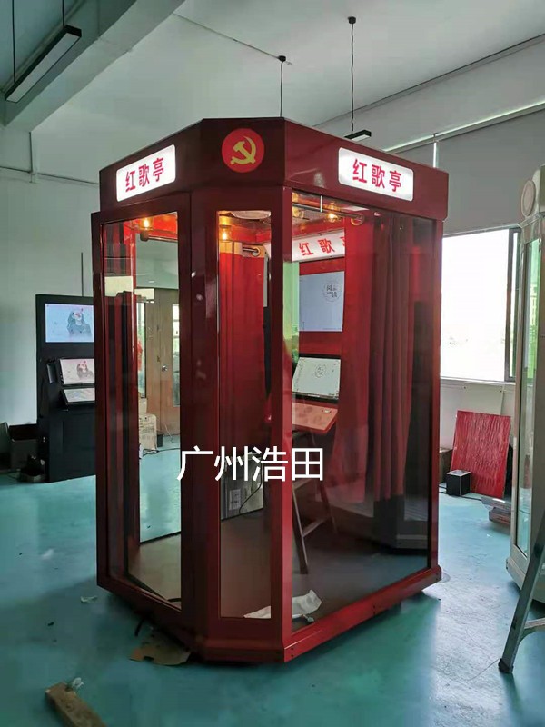 共享自助唱歌機,軍營戰友娛樂唱吧亭練歌房迷你KTV廠家定制。軍營唱吧圍繞部隊思想、政治教育展開,將思想性、娛樂性、藝術性融為一體,把娛樂向教育滲透,展現了軍隊文化器材的獨特魅力。